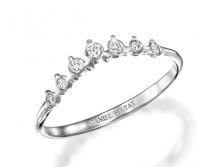 טבעת חצי נישואין יהלומים קלאסית ועדינה בעיצוב מלכותי עשויה זהב 14K ומשובצת 7 יהלומים במשקל 0.09 קראט מתאימה גם כסט לטבעת וגם על האצבע לבד.