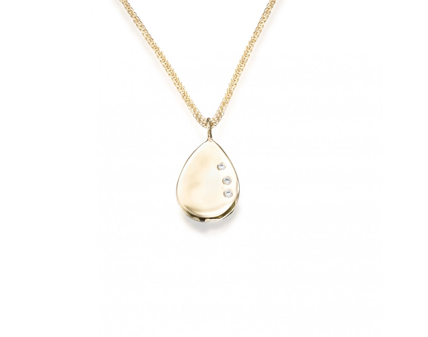שרשרת זהב לבן עם תליון טיפה בליווי שלושה יהלומים עדינים ומדגישים.